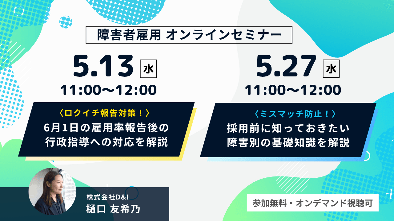 開催予定【障害者雇用セミナー】6月1日の雇用率報告後の行政指導への対応を企業動向と事例から解説